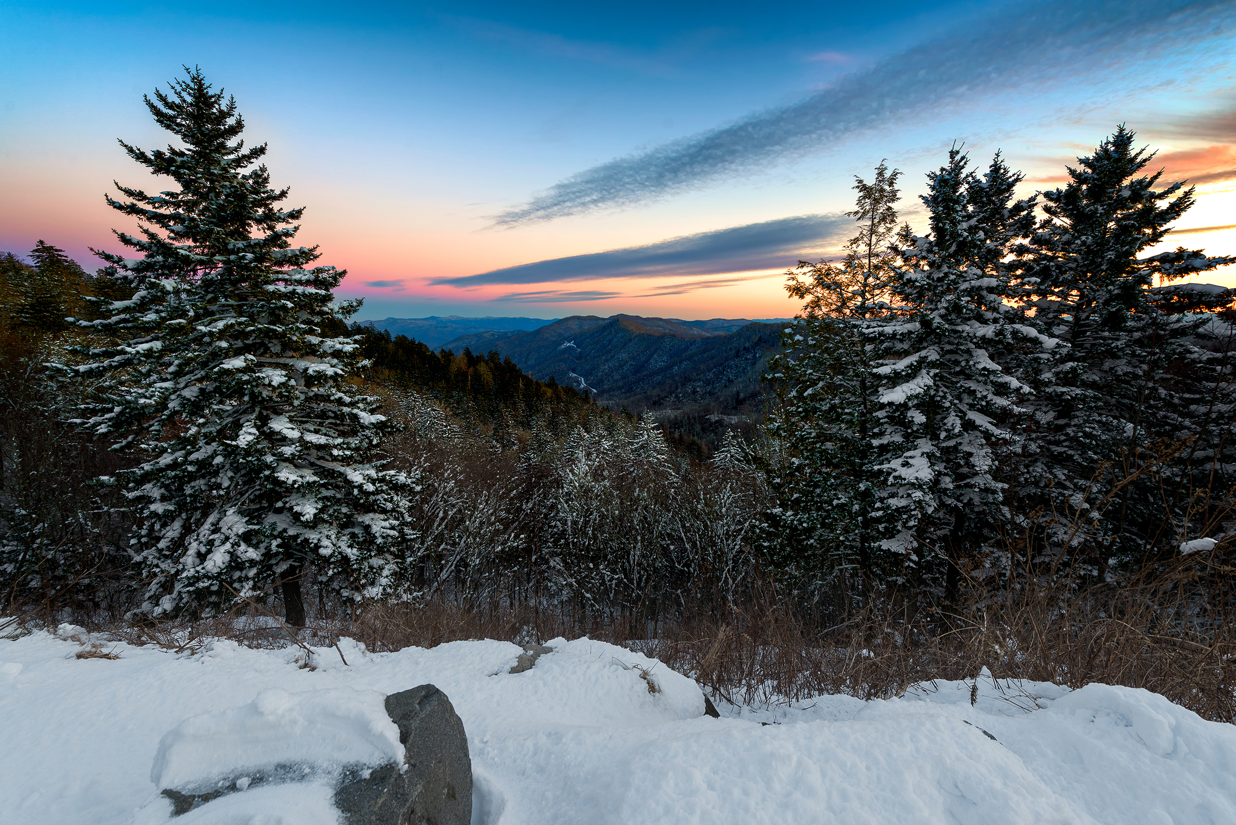 Newfound Gap Overlook Sunset, Great Smoky Mountain National Park [OC][OS][2500×1669]